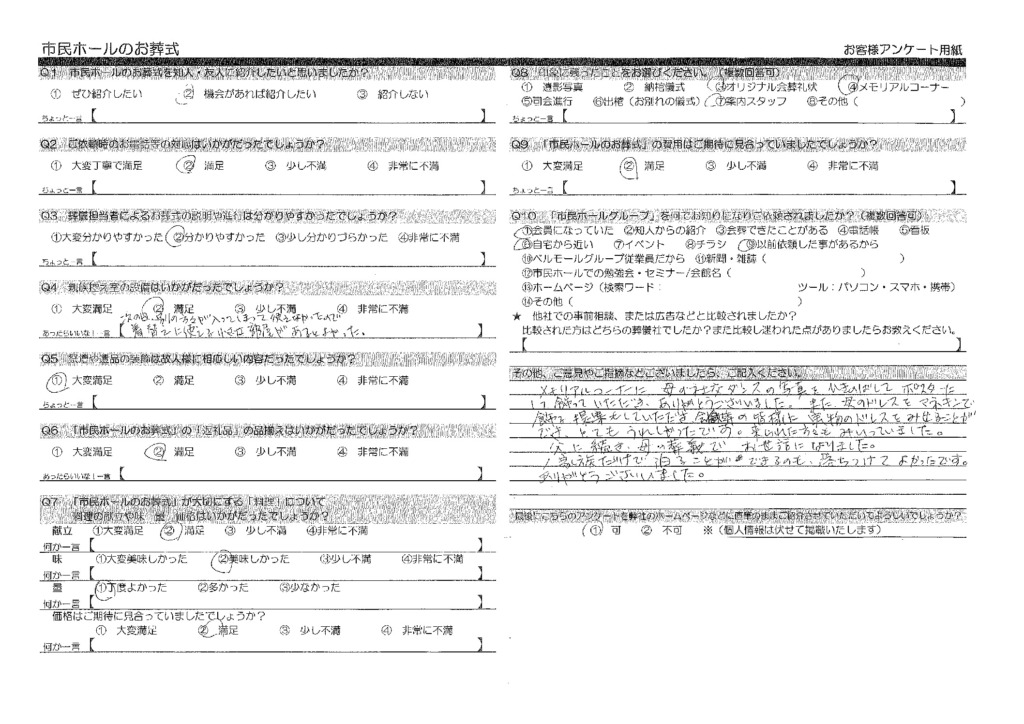 このたびは心温まるご感想を賜り、誠にありがとうございます。社交ダンスのお写真やドレスの展示を通して、お母様らしいお見送りのお手伝いができましたことを大変光栄に存じます。お父様に続きご縁をいただきましたことにも深く感謝申し上げます。今後も心に寄り添う対応に努めてまいります。