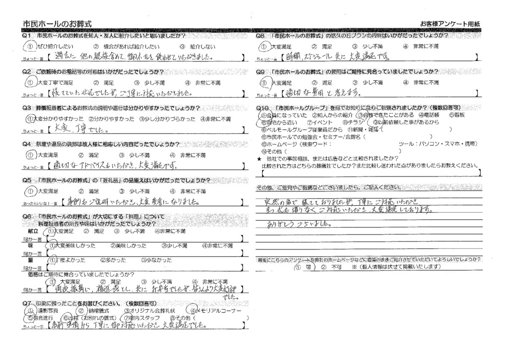 このたびは心温まるお言葉をお寄せいただき、誠にありがとうございます。突然のご不幸の中でも、安心してお任せいただき、滞りなく式を執り行えたとのご評価を大変光栄に存じます。今後もご遺族様に寄り添った丁寧な対応を心がけてまいります。